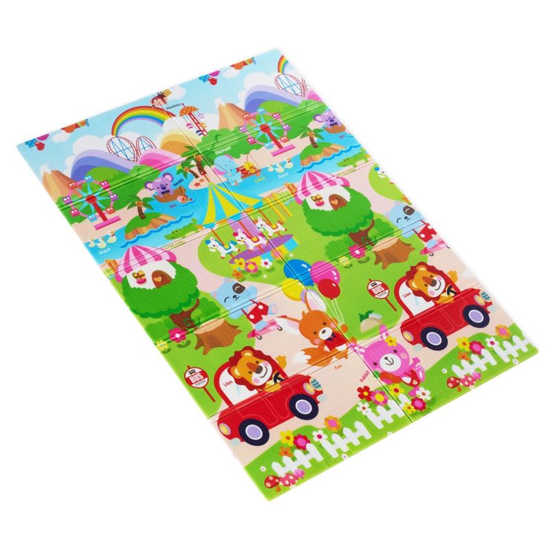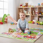 Dupla face, dobrável e educativo, apresenta estampas coloridas e envolventes em ambos os lados, estimulando o desenvolvimento cognitivo, sensorial e visual da criança. O design versátil permite alternar as estampas, integrando-se facilmente a diferentes ambientes, como quarto, sala, brinquedoteca ou espaço kids.