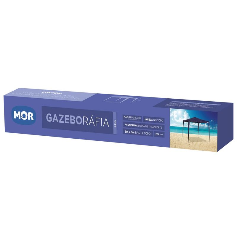 A sua medida no topo e na base é de 3m x 3m. Com uma estrutura resistente, montagem rápida por duas pessoas. Produzido em tecido 100% ráfia com FPS 100, que oferece uma proteção ao sol muito maior, garantindo mais conforto e segurança.