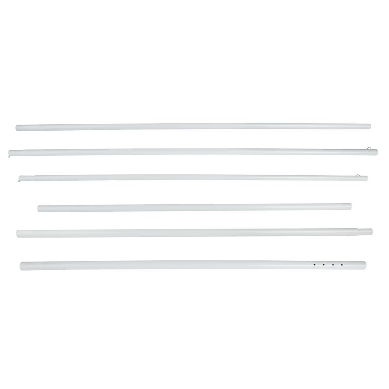 Desenvolvida em aço carbono com pintura epóxi à pó e pés em aço carbono. Com saída de ar no topo, proporciona maior estabilidade para quando você estiver ao ar livre. Além disso, acompanham ganchos de plástico para melhor fixação no solo, discos para melhor fixação na areia e sacola para facilitar o transporte.