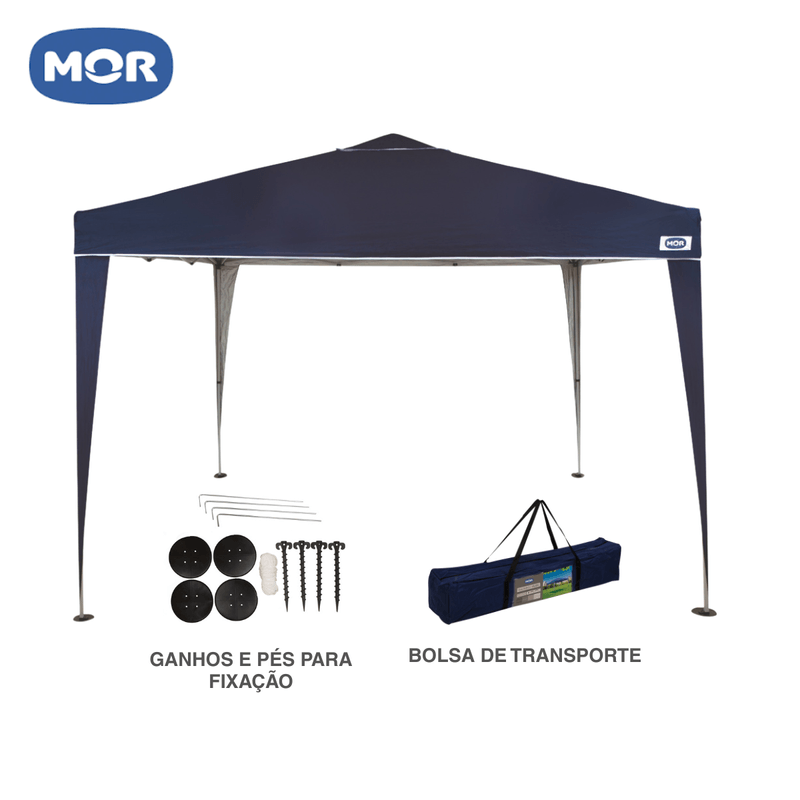 Tenda Gazebo Estrutura Sanfonada Dobrável X-Flex Oxford 3x3m Barraca de Praia Azul - Mor