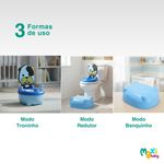Modo Banquinho: Possibilita transformar o troninho em um banquinho, quando virado de cabeça para baixo e retirado as alças de apoio. Ideal para o descanso das crianças e atividades extras.
