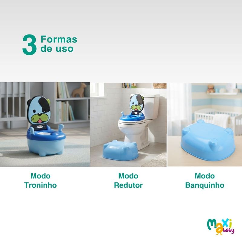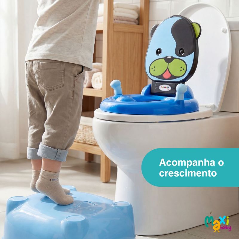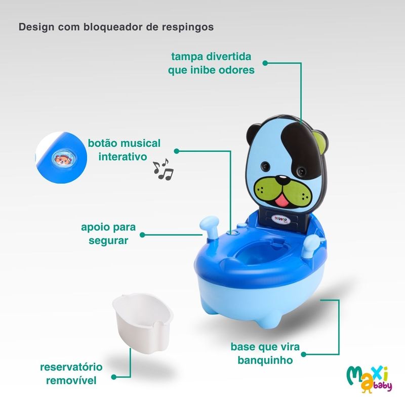 Troninho Penico Infantil Musical Desfralde Que Vira Banquinho Cachorro Azul Maxi Baby